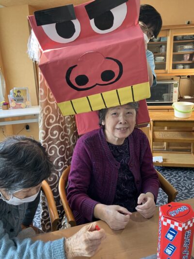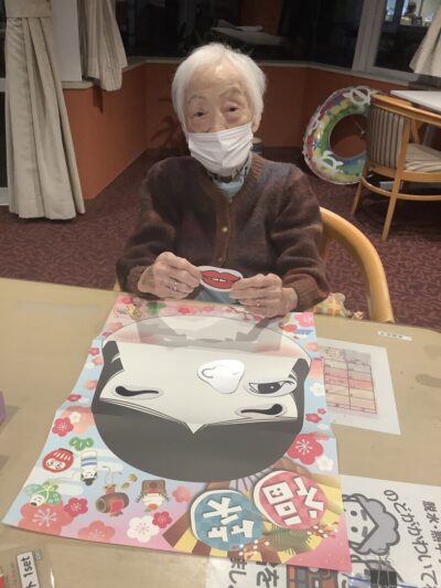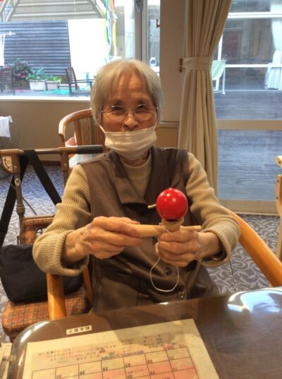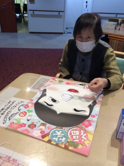 福笑い、けん玉、かるたとお正月らしく