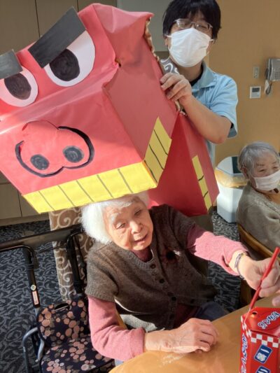 獅子舞の登場に皆様元気に初笑い![]()
