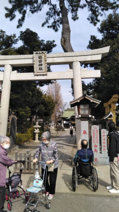 菊田神社は平面が多く、階段を登ることなくお参りが出来るためお参りさせていただくこととなりました。
