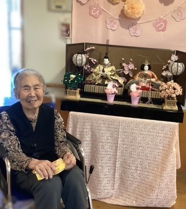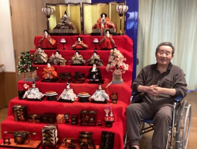 色鮮やかな衣装に身を包んだお雛様を前に「豪華できれいだね~」「可愛いね」など沢山のお声が聞こえ、利用者様同士の会話も自然と弾み、フロア全体がやさしい笑顔に包まれていました。