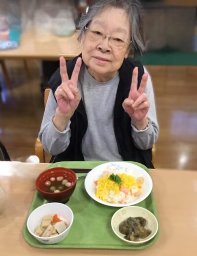 昼食にはひな祭り定番の食事、彩り豊かなちらし寿司を心を込めてご用意しました。