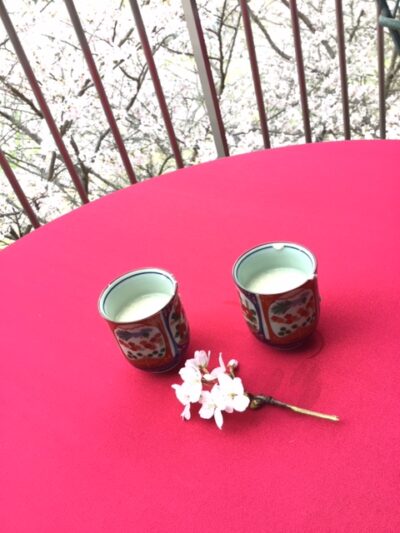 「桜を眺めながらの甘酒は格別ね