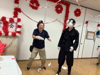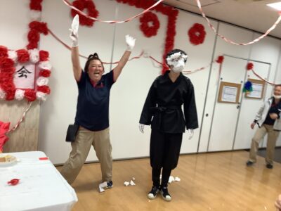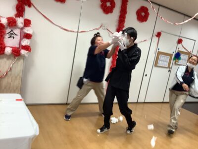 今年は職員の余興として二人羽織をさせていただきました!!